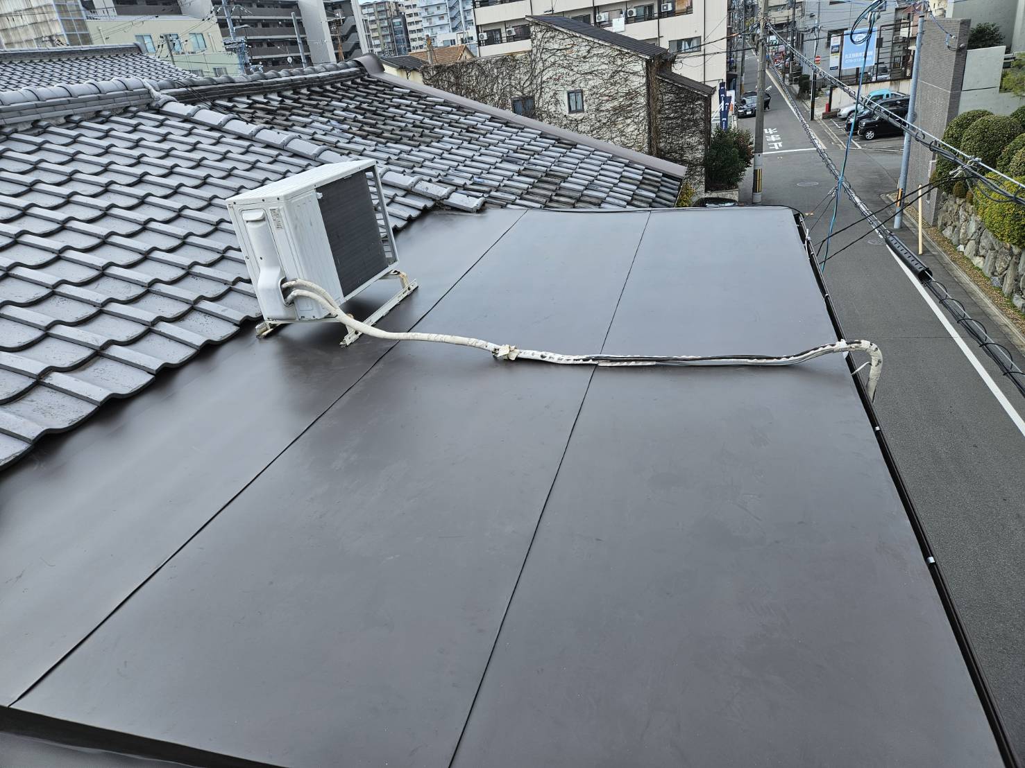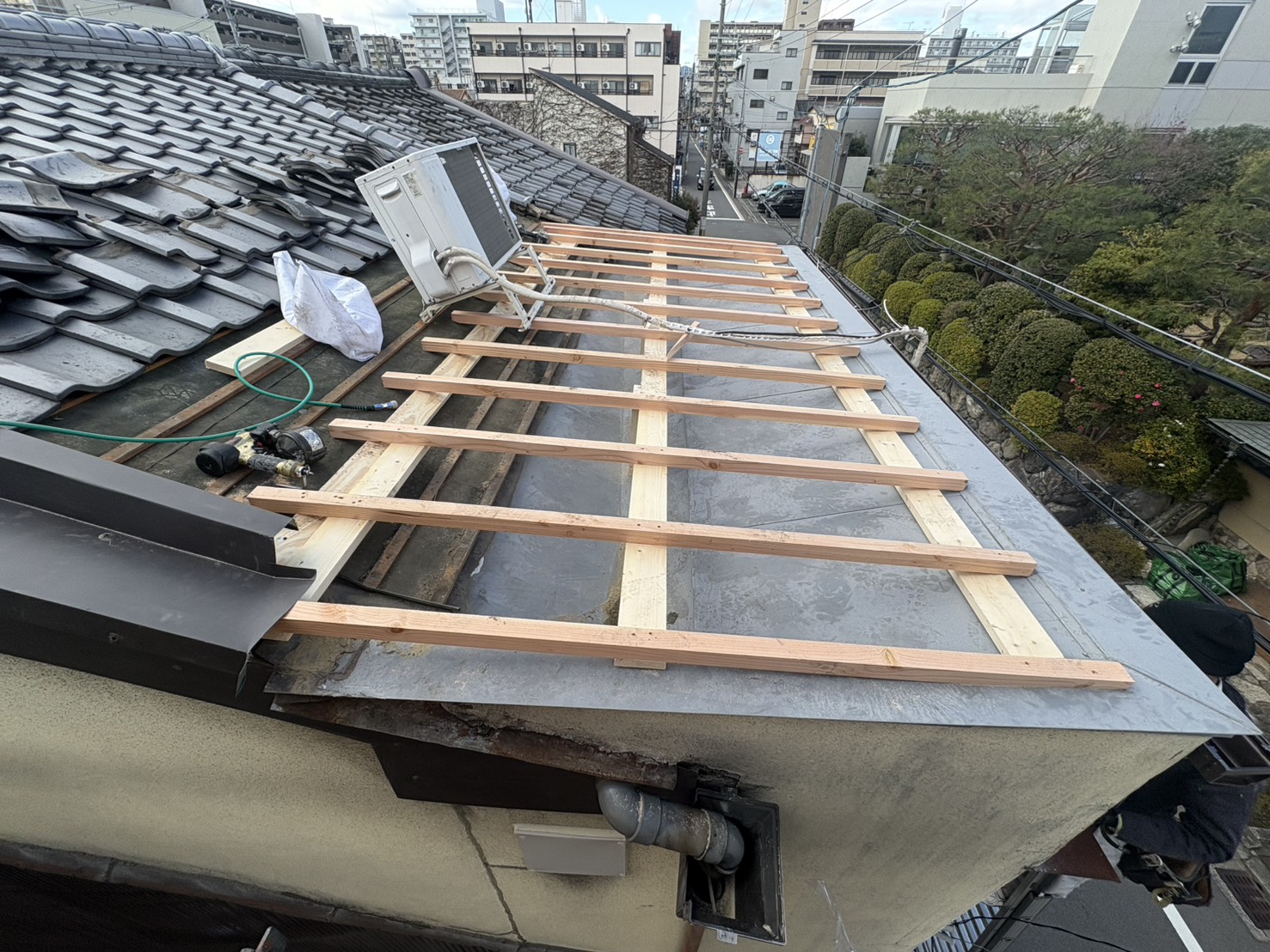 先日地鎮祭を終え来年基礎工事着工開始の下京区K様邸隣家の雨樋などの屋根越境物撤去工事も昨日無事に完了