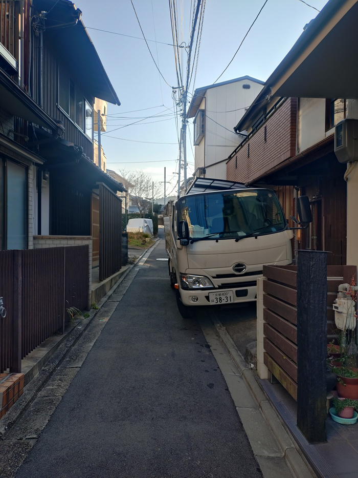 前面道路がかなり狭いのでダンプの進入がかなりギリギリなので事故など気をつけて行います。